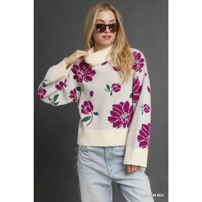 I am a Fashion Junky Umgee Floral Patterned Mock Neck Sweater