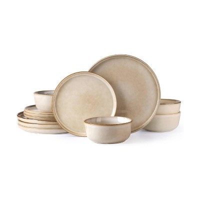 Itopfox Stoneware Dinnerware Set, Round Reactive Glaze Plates and Bowls, Scratch Resistant, Dishwasher & Microwave Safe, Service for 4 (12pc)