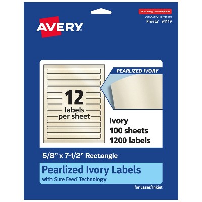 Avery Pearlized Ivory Rectangle Labels with Sure Feed Technology, Print-to-the-Edge, 5/8" x 7-1/2"