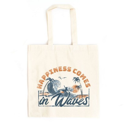 City Creek Prints Happiness Comes In Waves Colorful Canvas Tote Bag - 15x16 - Natural