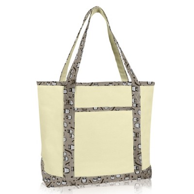 Dalix Owl Tote Shoulder Bag Natural Cotton Canvas