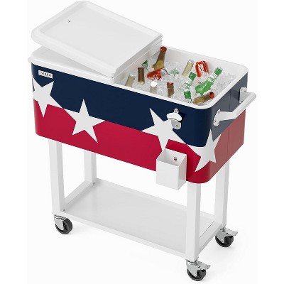 VINGLI 80 Quart Rolling Ice Chest, Portable Patio Party Bar Drink Cooler Cart, with Shelf, Beverage Pool with Bottle Opener