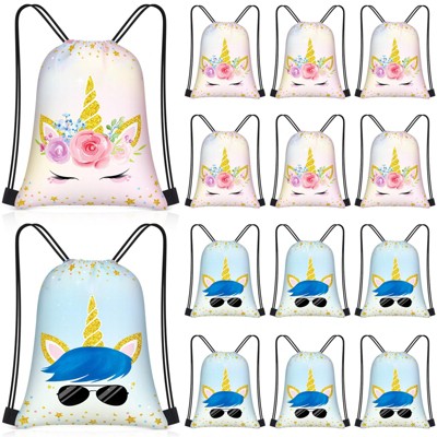 Narwey 24 Pcs Unicorn Drawstring Bags Set Bulk 12 x 10 Inch Candy Treat Goody Waterproof Beach Bags