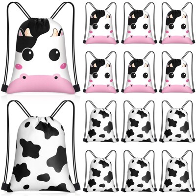 Narwey 24 Pcs Cow Print Drawstring Bags Set Bulk 12 x 10 Inch Candy Treat Goody Waterproof Beach Bags