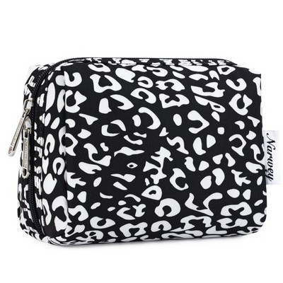 Narwey Small Cheetah Makeup Bag for Purse Mini Cosmetic Bag Travel Makeup Pouch Zipper Pouch Cute (Black Leopard, Small)