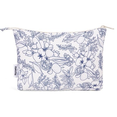 Narwey Small Makeup Bag for Purse Travel Makeup Pouch Cosmetic Bag (Navy Blue Flower)