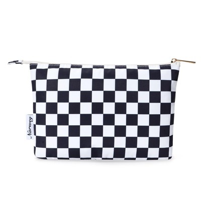 Narwey Small Checkered Makeup Bag for Purse Small Cosmetic Bag Women Travel Makeup Pouch (Black Checkerboard)