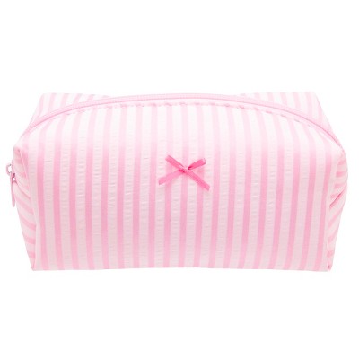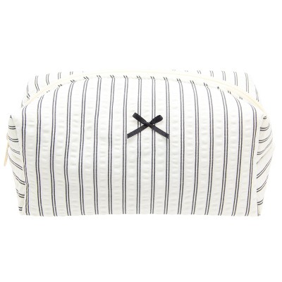 Narwey Cozy Makeup Bag Small Aesthetic Travel Zipper Cosmetic Pouch for Women Make Up Beauty Accessories Brushes, Stripe Lake Blue