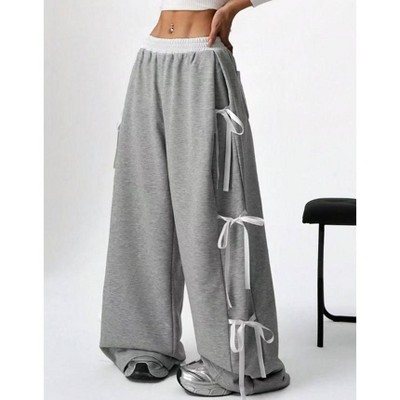 Coolmee Women's Sweatpants Elastic Waist Casual Side Bow Tie Wide Leg Going Out Travel Baggy Pants with Pockets