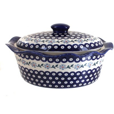 Blue Rose Polish Pottery Z137 Manufaktura Large Oval Baker with Lid