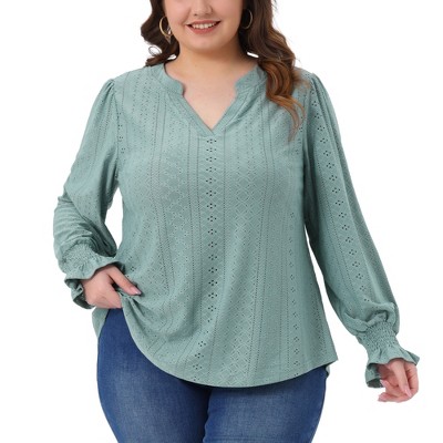 Agnes Orinda Women's Plus Size Chiffon Batwing Ruffle Long Sleeve Crew Neck Casual Blouses
