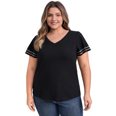 Women's Plus Size V Neck Ruffle Sleeve Pleated Peplum Blouses - Agnes Orinda