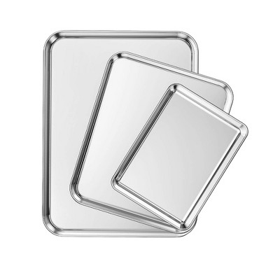 Itopfox Stainless Steel Baking Sheet Set of 3, Non Toxic & Heavy Duty Cookie Sheets, Easy Clean & Rust Resistant for Toaster Ovens & Serving