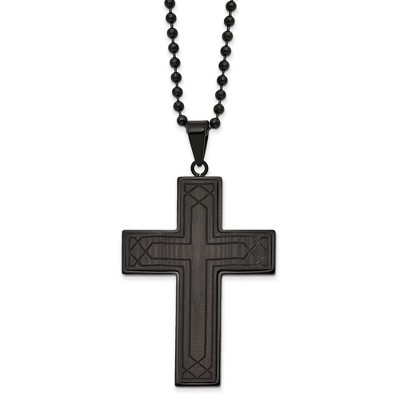 Black Bow Jewelry Men's Titanium & Stainless Steel Black Textured Cross Necklace, 22 In