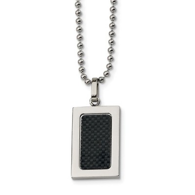 Black Bow Jewelry Men's Stainless Steel Black Carbon Fiber Rectangular Necklace 22 Inch