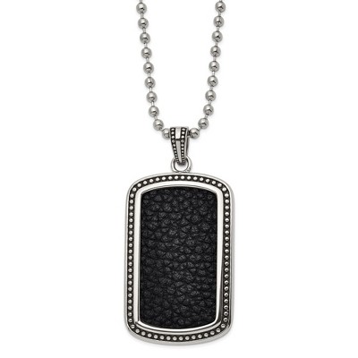 Black Bow Jewelry Stainless Steel Large Dog Tag Medical Alert Necklace - 24 Inch