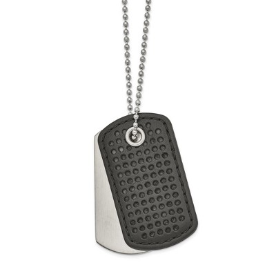 Black Bow Jewelry Stainless Steel Cable Inlay Convex Curved Dog Tag Necklace, 22 Inch