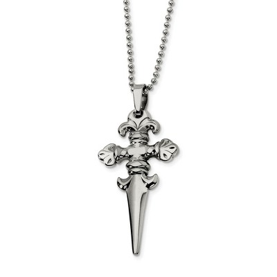 Black Bow Jewelry Men's Stainless Steel Fleur de lis Dagger Necklace