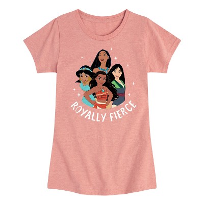 Girls' - Disney Princess - Moana Jasmine Pocahontas Mulan Royally Fierce Fitted Short Sleeve Graphic T-Shirt