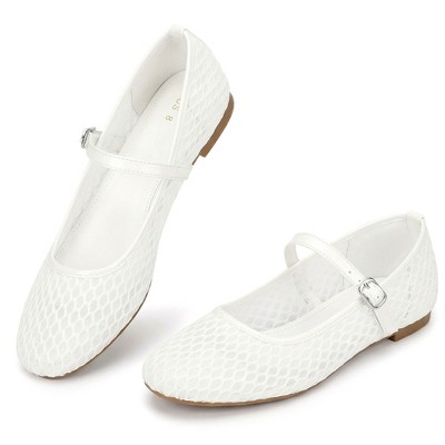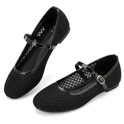 BLISSFUL STEP Round Toe Buckle Strap Breathable Mesh Ballet Flats Pumps for Women