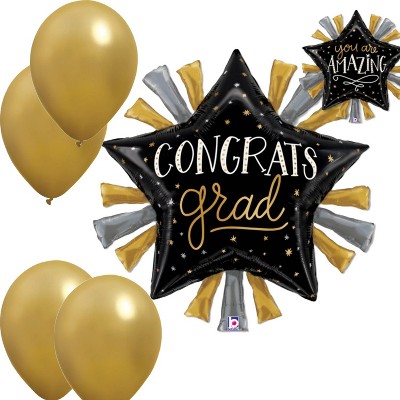 LOONBALLOON Graduation Grad Theme Balloon Set, 32 Inch Grad Bold Rainbow Balloon, Star Foil and Standard Grad Bold Rainbow Balloon