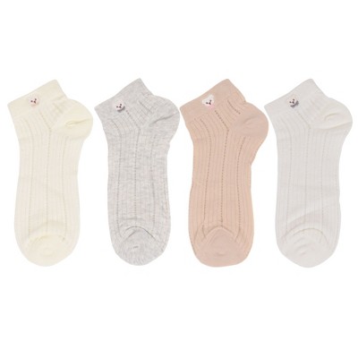 Anna-Kaci 4 Pairs Women's Ankle Mesh Socks with Bear Embroidery Lightweight Breathable Knit and Elastic Cuffs