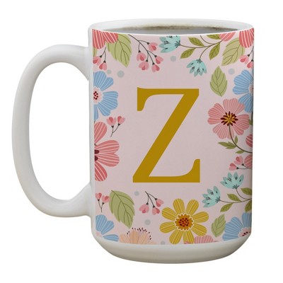 Personalization Mall Flowery Initial Personalized Coffee Mug Gold/Pink
