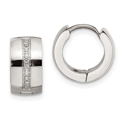 Chisel Stainless Steel Polished with Preciosa Crystal 7mm Hinged Hoop Earrings