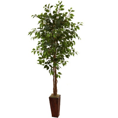 Nearly Natural 6-ft Ficus Tree with Bamboo Planter