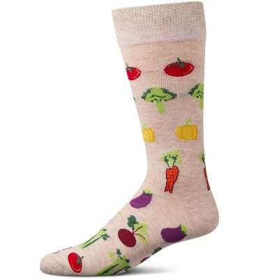 Memoi Men's Veggies-Themed Rayon Blend Fine-Gauge Novelty Crew Sock Ivory Heather 10-13