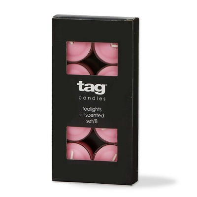 tag Color Studio Tealight Candles Set of 8 Pink Smokeless Paraffin Wax Burn Time 3 Hrs