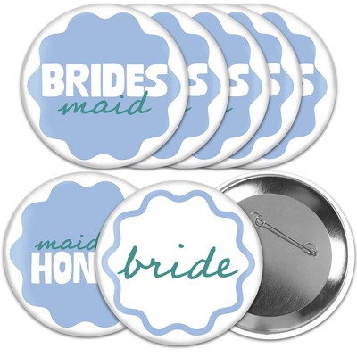 Big Dot of Happiness Blue and Teal Wavy Bridal Party Buttons, 3-inch Bachelorette Party Badge, Bride & Bridesmaids, Pinback Buttons - Set of 8