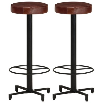 vidaXL Bar Stool Set of 2 Brown, Black Real leather, Powder-coated iron