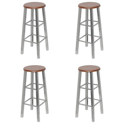 vidaXL Bar Stool Set of 4 Silver and Brown Steel and MDF Standard