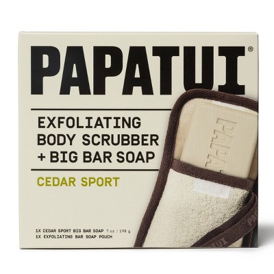 Papatui Men's Sulfate-Free Exfoliating Durable Exfoliating Body Scrubber and Bar Soap Set - Cedar Sport - 2ct