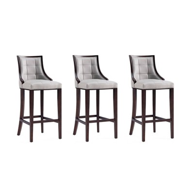 Set of 3 Emperor Upholstered Beech Wood Faux Leather Barstools - Manhattan Comfort