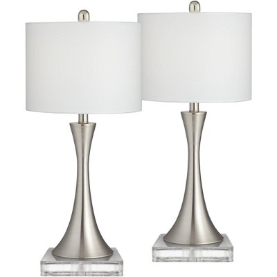 360 Lighting Gerson Modern Table Lamps Set of 2 with Square Risers 25 1/2" High Brushed Nickel Dimmers LED White Drum Shade for Bedroom Living Room