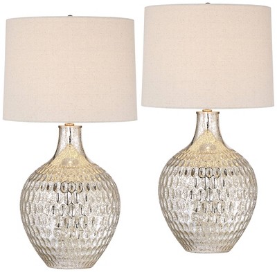 360 Lighting Waylon 28" Tall Modern Luxe Coastal End Table Lamps Set of 2 Silver Mercury Glass Off-White Shade Living Room Bedroom Bedside Nightstand