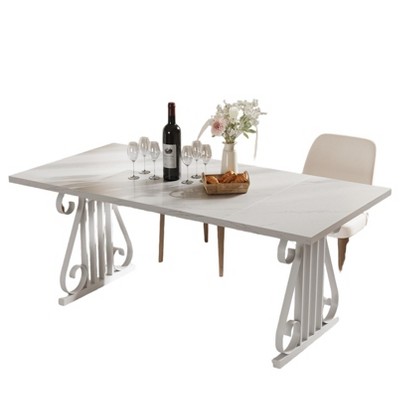 70" Southwind Rectangle Genuine Marble Top Dining Table White/Black - HOMES: Inside + Out: Elegant U-Shaped Base, Seats Six, Wood Veneer