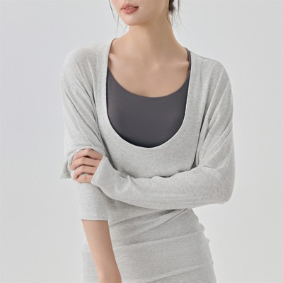 Clotth Women's U-Neck Pilates Training Cover-Up - Loose Fit, Batwing Sleeves, Long Sleeve Yoga Top