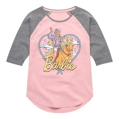 Girls' - Barbie - Western Barbie Heart Shirt Tail Raglan Graphic T-shirt