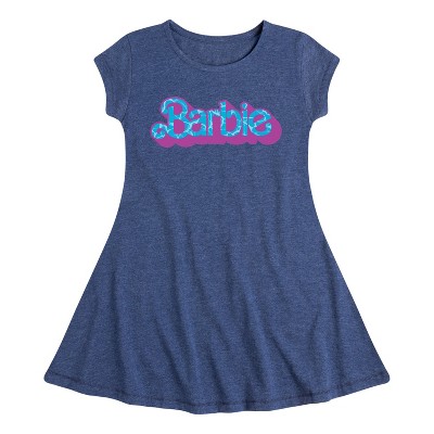 Girls' Barbie Christie Retro 1987 Fit & Flair Cap Sleeve Graphic Dress - Heather Navy - Medium