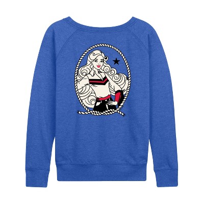Women's - Barbie - Barbie Western Americana Lightweight French Terry Wide Neck Long Sleeve Graphic Shirt