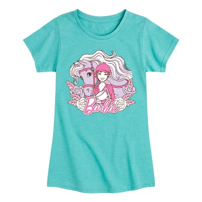 Girls' - Barbie - Horse Flowers Fitted Short Sleeve Graphic T-Shirt