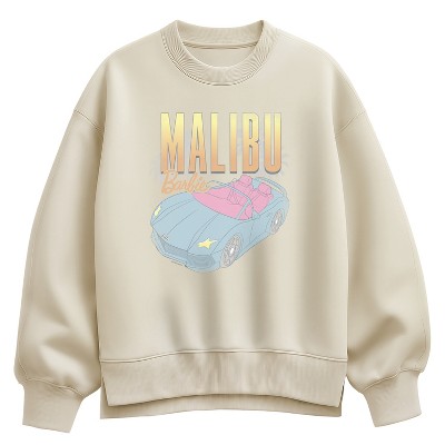 Women's - Barbie - Malibu Beach Car Oversized Fleece Crew Sweatshirt