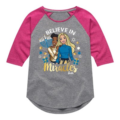 Girls' - Barbie - Believe In Miracles Holiday Shirt Tail Raglan Graphic T-shirt