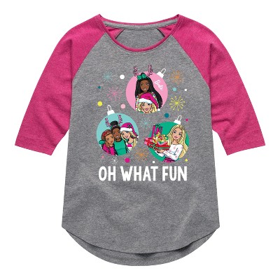 Girls' - Barbie - Holiday Friends Shirt Tail Raglan Graphic T-shirt