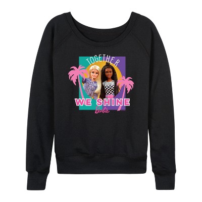 Women's - Barbie - Friend Goals Lightweight French Terry Wide Neck Long Sleeve Graphic Shirt