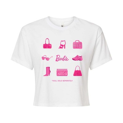 Women's - Barbie - Iconic Purse, Shoes, Sunglasses, & Boombox Cropped Graphic T-Shirt