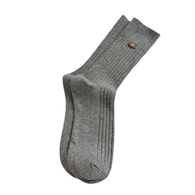 Anna-Kaci Women's 3-Pair Ribbed Crew Socks Soft Stretch Knit with Subtle Embblem Detail Comfortable Everyday Sock Set - Gray